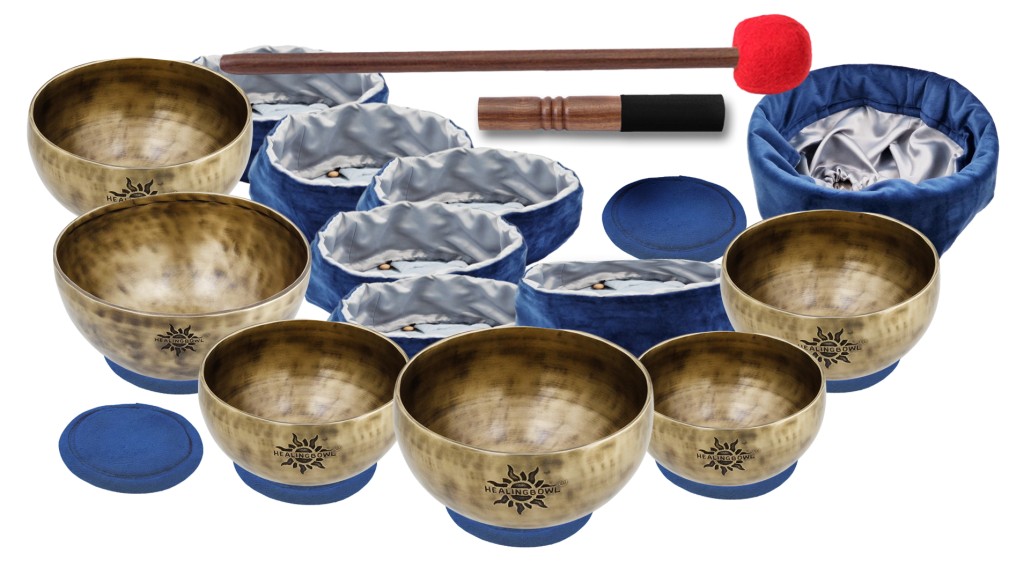 We recommend a complete set of 14 singing bowls (7 large universal + 7 small acoustic) for practice.