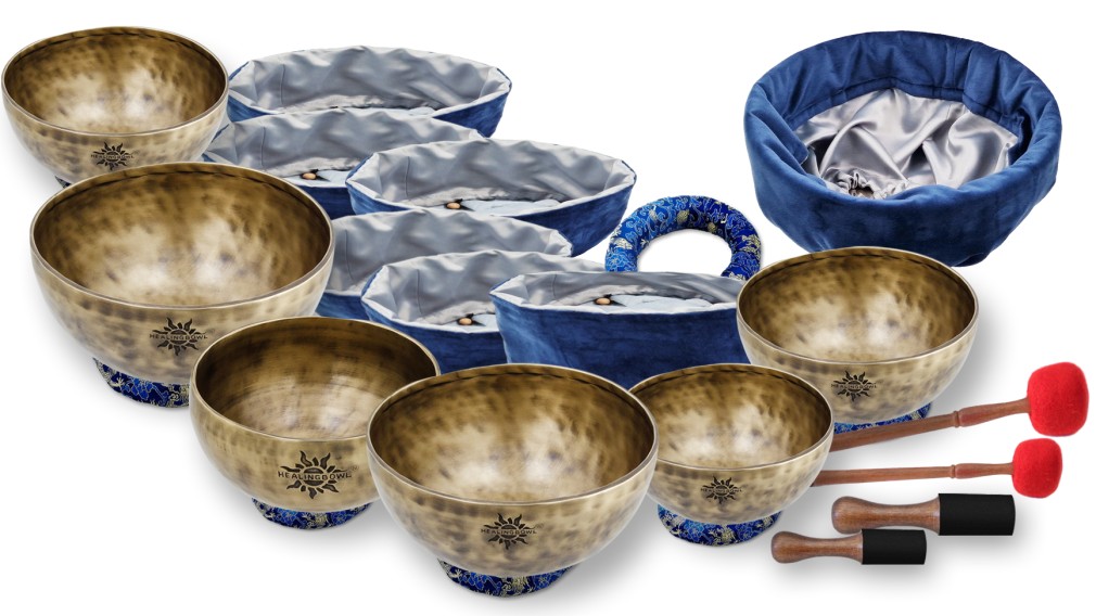 We recommend a complete set of 14 singing bowls (7 large universal + 7 small acoustic) for practice.