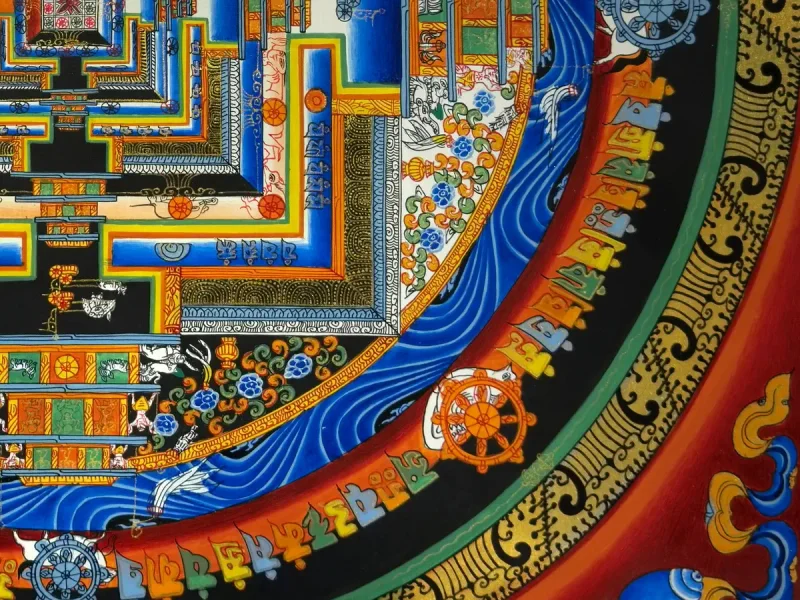 Tibetan Thangka: Golden Kalachakra Mandala (on canvas), 50×50 cm