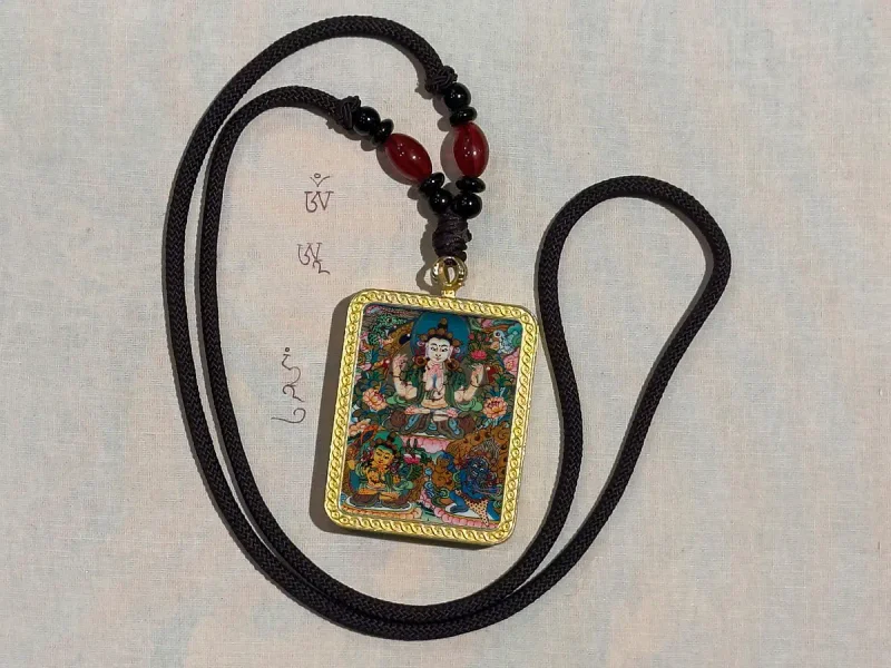 Thangka pendant Chenrezig, 4×5 cm. TK-005