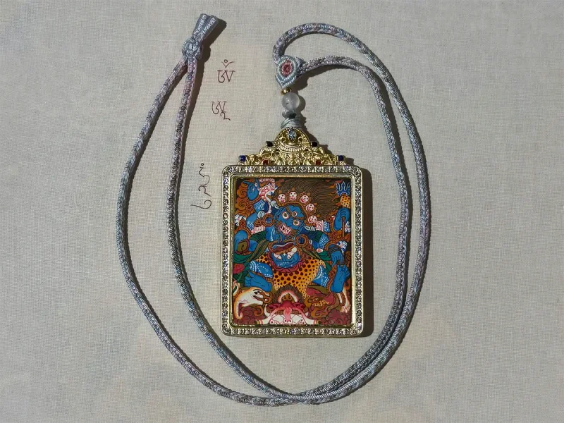 Miniature thangka pendant (4×5 cm) — a piece of traditional Tibetan art.